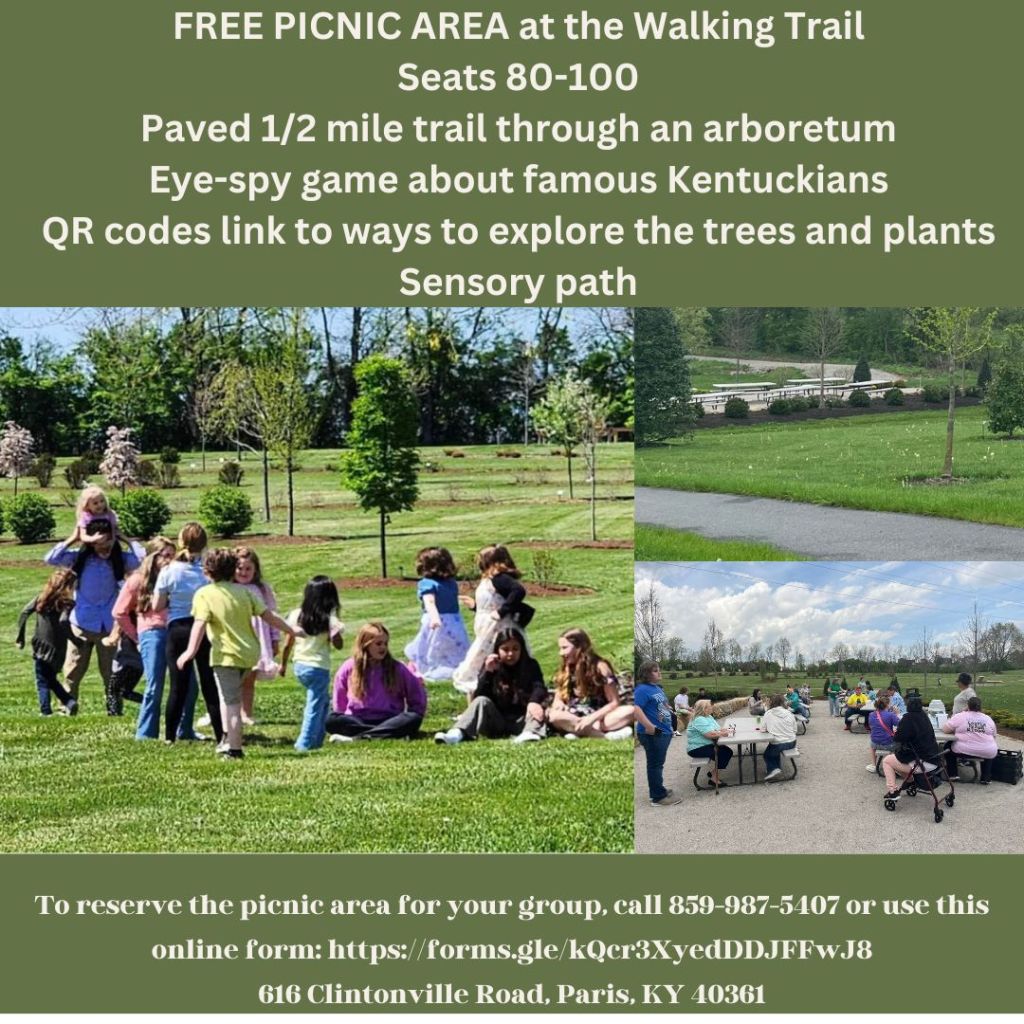 Use the form below to contact us about arranging a field trip for your class or group. Field trips to the walking trail and arboretum are always free. All you need to do is arrange the transportation to Paris, Kentucky, and bring a picnic lunch. A field trip to the Walking Trail & Arboretum takes just under three hours, including time for a picnic.